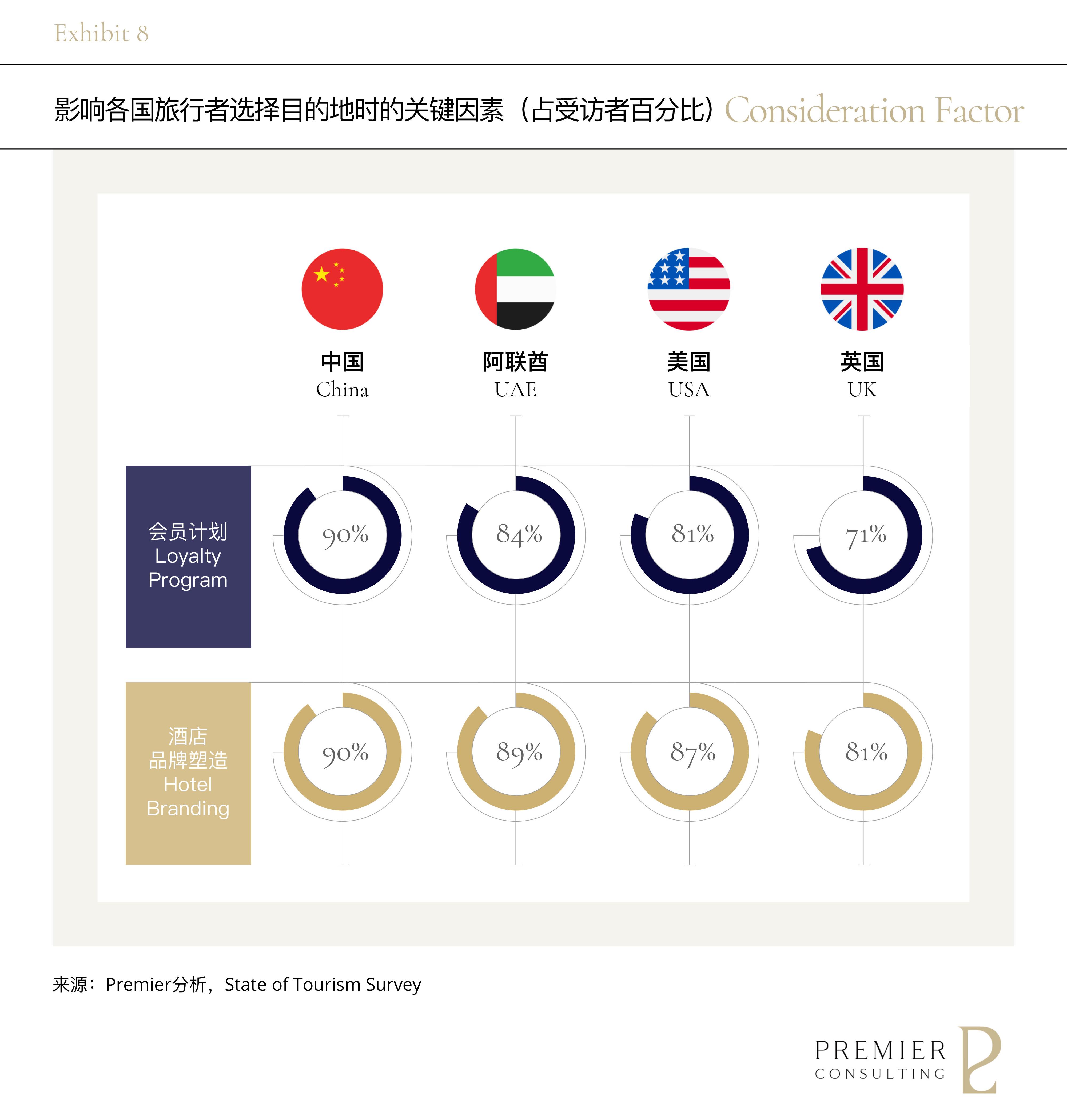 - 中国和阿联酋旅客尤为看重忠诚度计划:相比欧美市场,这两个地区的高端旅客更倾向于选择连锁奢华酒店品牌,而独立奢华酒店的市场份额相对较小。这一趋势意味着,在中国市场,品牌忠诚度计划的影响力将进一步提升。