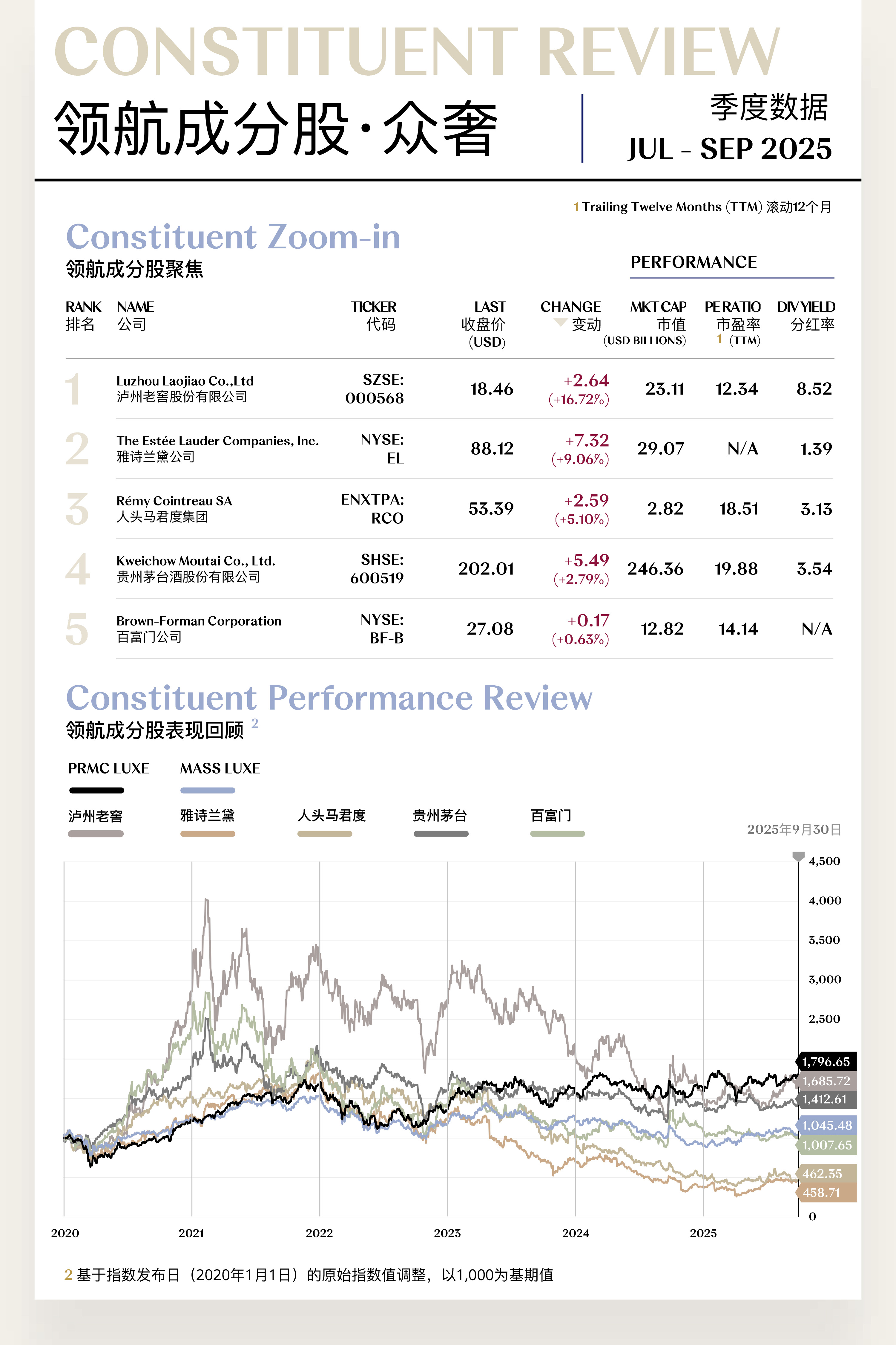 精奢指数(PRMC Core Luxe Index)三季度收于1,899.47点,季内下跌0.29点(-0.02%);