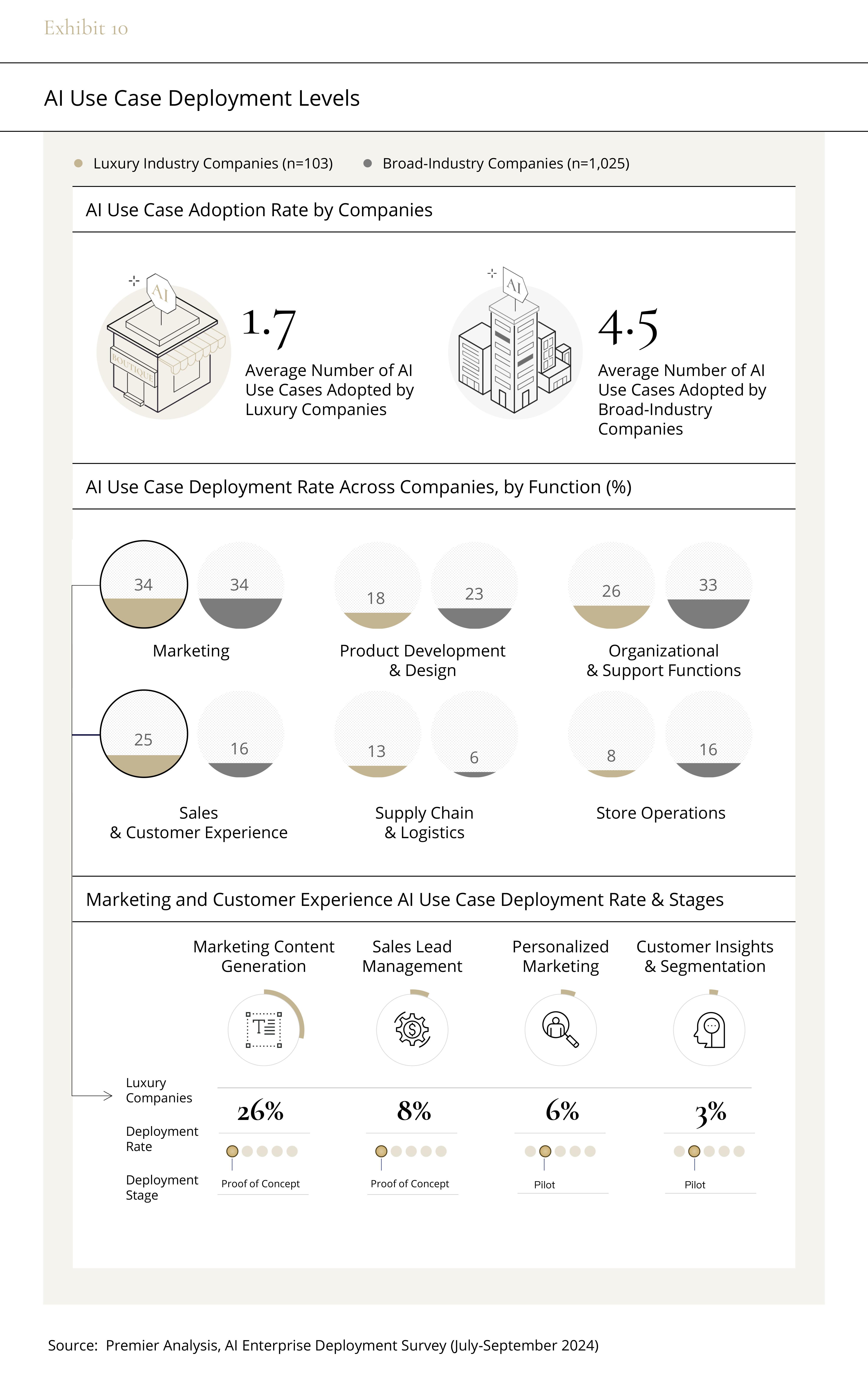 Although the overall adoption rate of AI use cases in luxury goods companies is lower than in other industries, luxury brands have already achieved leadership in the areas of marketing, sales, and customer management.