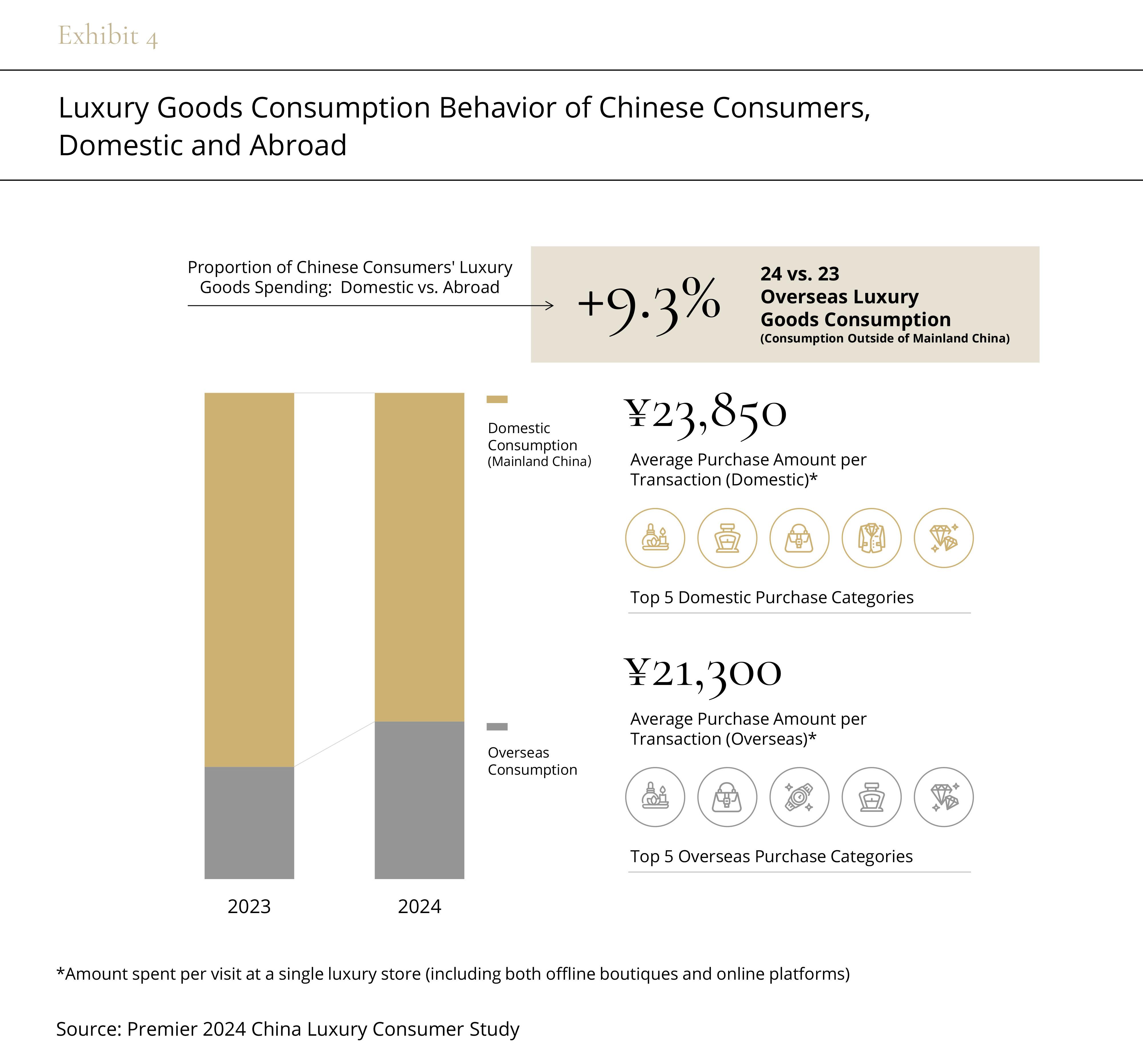 In the beginning of 2024, the loss of overseas consumption has become a significant concern for the stability of the Chinese market. According to Premier 2024 China Luxury Customer Behavior Research, over 30% of luxury goods consumption by Chinese consumers in 2024 occurred overseas, reflecting a 9.3 percentage point increase compared to 2023.