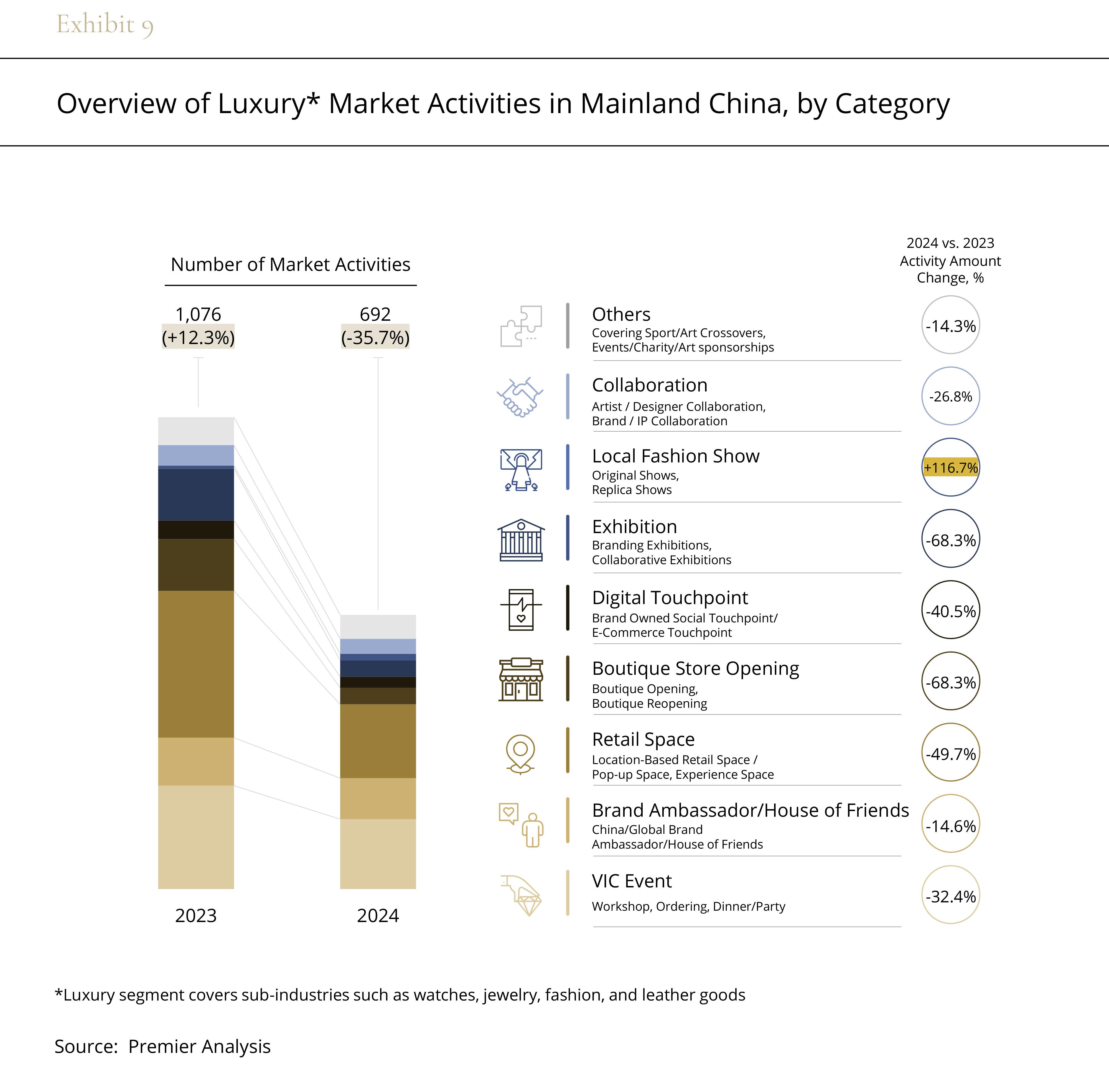 According to Premier's data, the total number of luxury brand events in Mainland China in 2024 decreased by over 30% compared to the previous year. With more carefully allocated budgets, brands are now focusing on key events and enhancing Very Important Client (VIC) experiences.