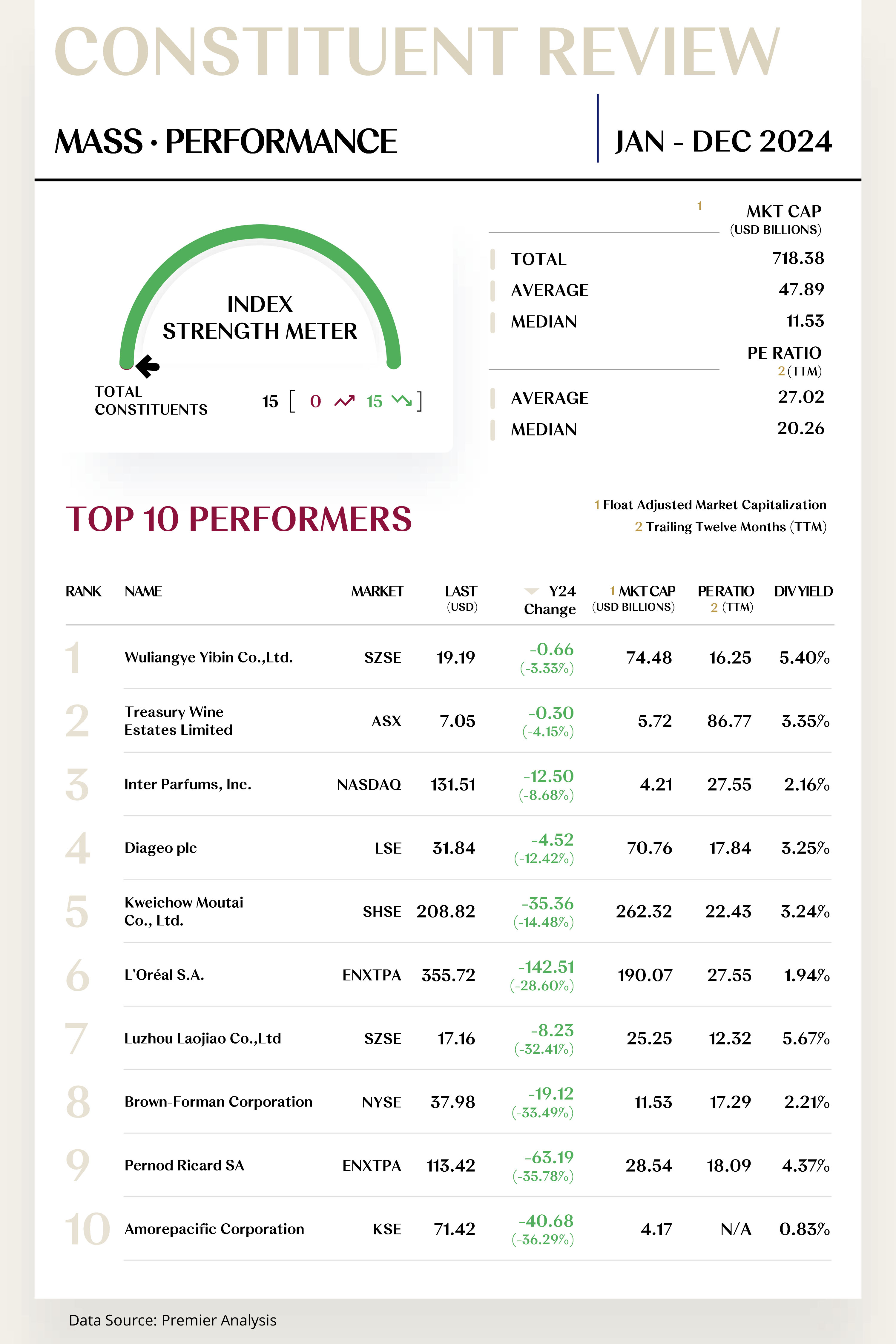 The Mass Luxe Index comprises 15 stocks, all of which posted year-over-year declines.