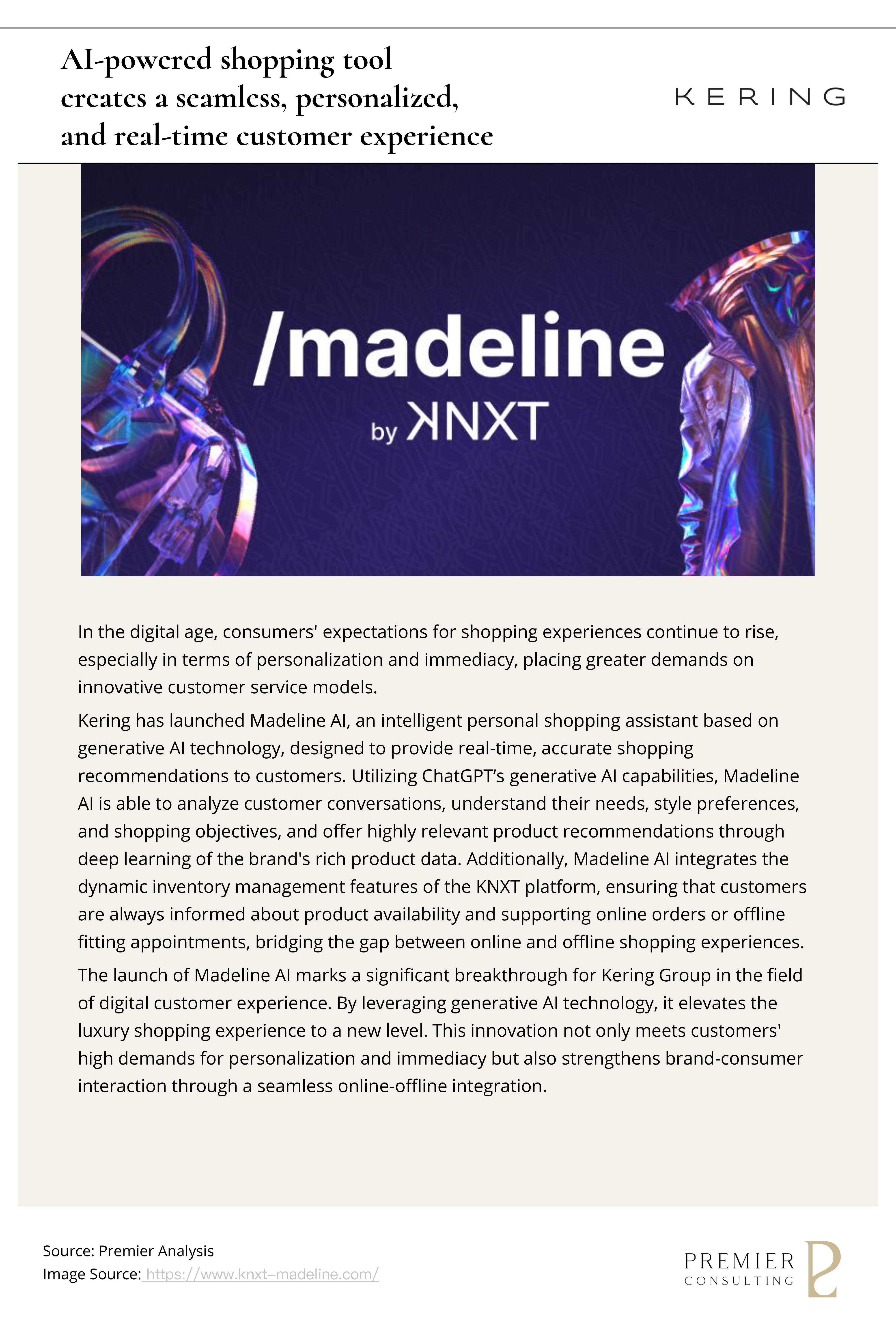 From a brand perspective, this strategy seamlessly blends AI-driven, personalized customer experiences with the brand's artisan heritage, injecting the dynamic energy of modern technology while preserving its core identity. Rather than diluting the brand's humanistic values, the introduction of AI strengthens its distinctiveness in delivering personalized service and differentiated experiences.