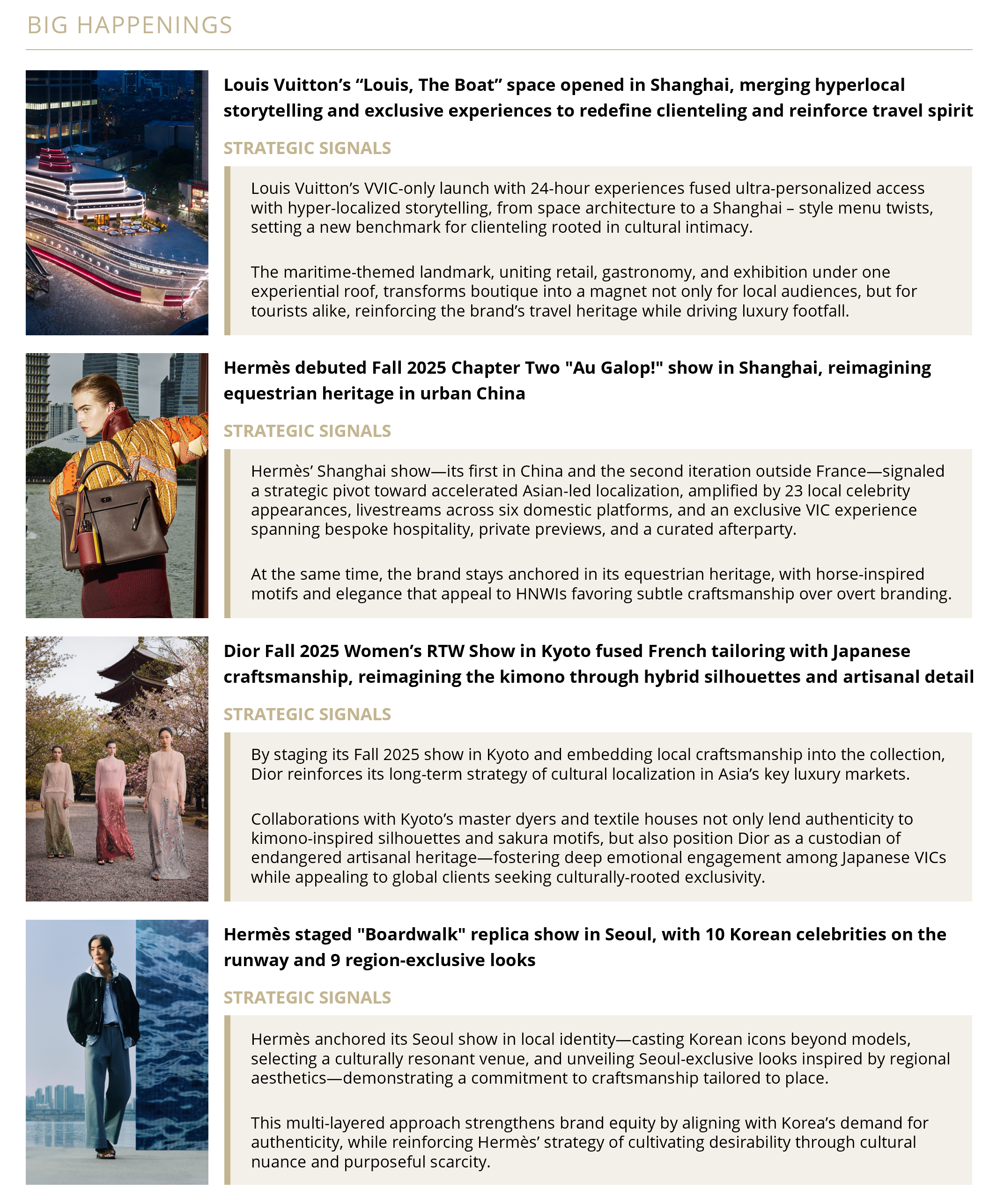 In H1 2025, luxury maisons faced subdued consumer confidence and intensifying geopolitical headwinds, creating renewed urgency to safeguard loyalty among core high-value clients while reactivating growth across the broader aspirational base.