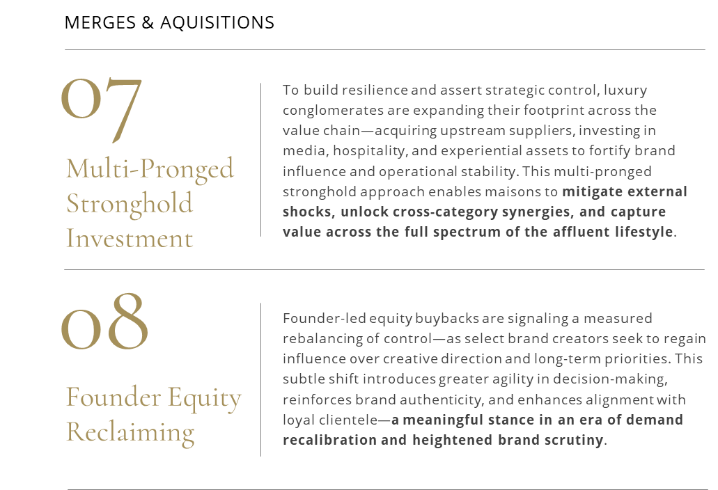 Luxury groups are tightening their grip—investing across supply chains, media, and experiential assets to anchor value creation and reinforce maison-led control. The focus is shifting from scattered equity plays to integrated ecosystems that align operations with aspiration.