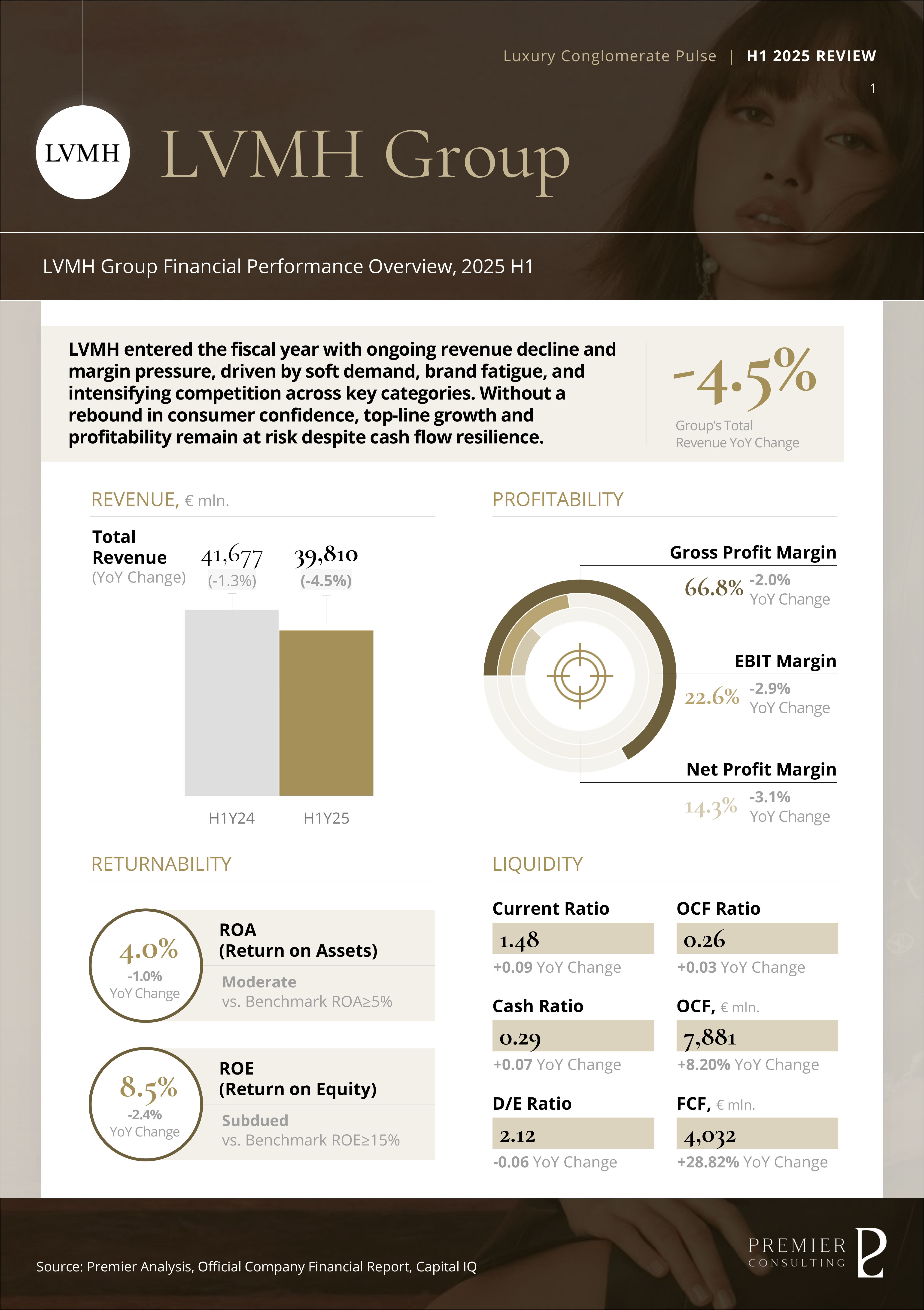 Fashion & Leather Goods sales declined, weighing on overall revenue performance as profitability tightened in parallel. Regional performance became increasingly volatile, and the recovery in China fell short of expectations. The Group strengthened cost controls and relied on support from diversified business segments to maintain its scale and market activity, continuing to reinforce its influence within the industry.