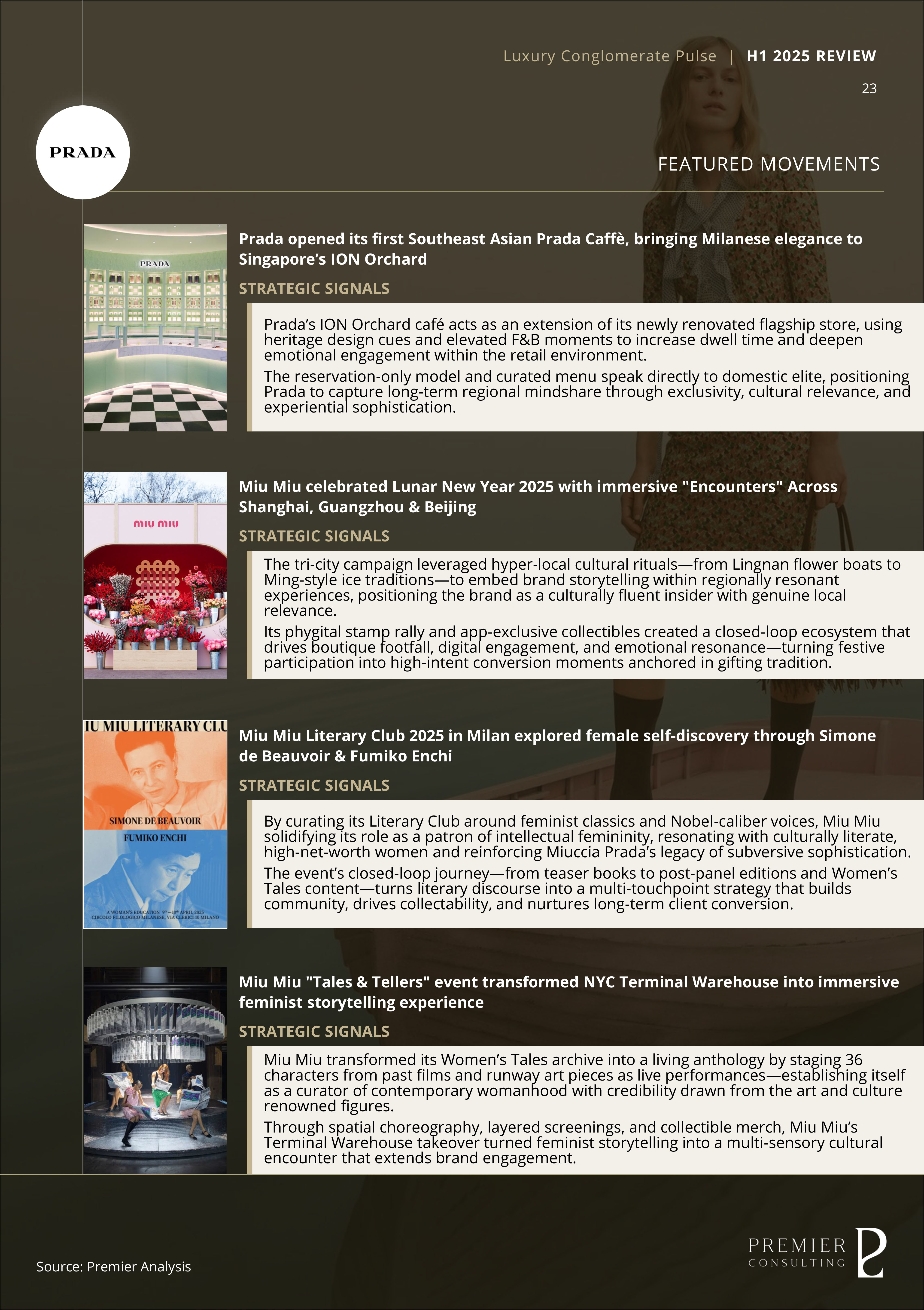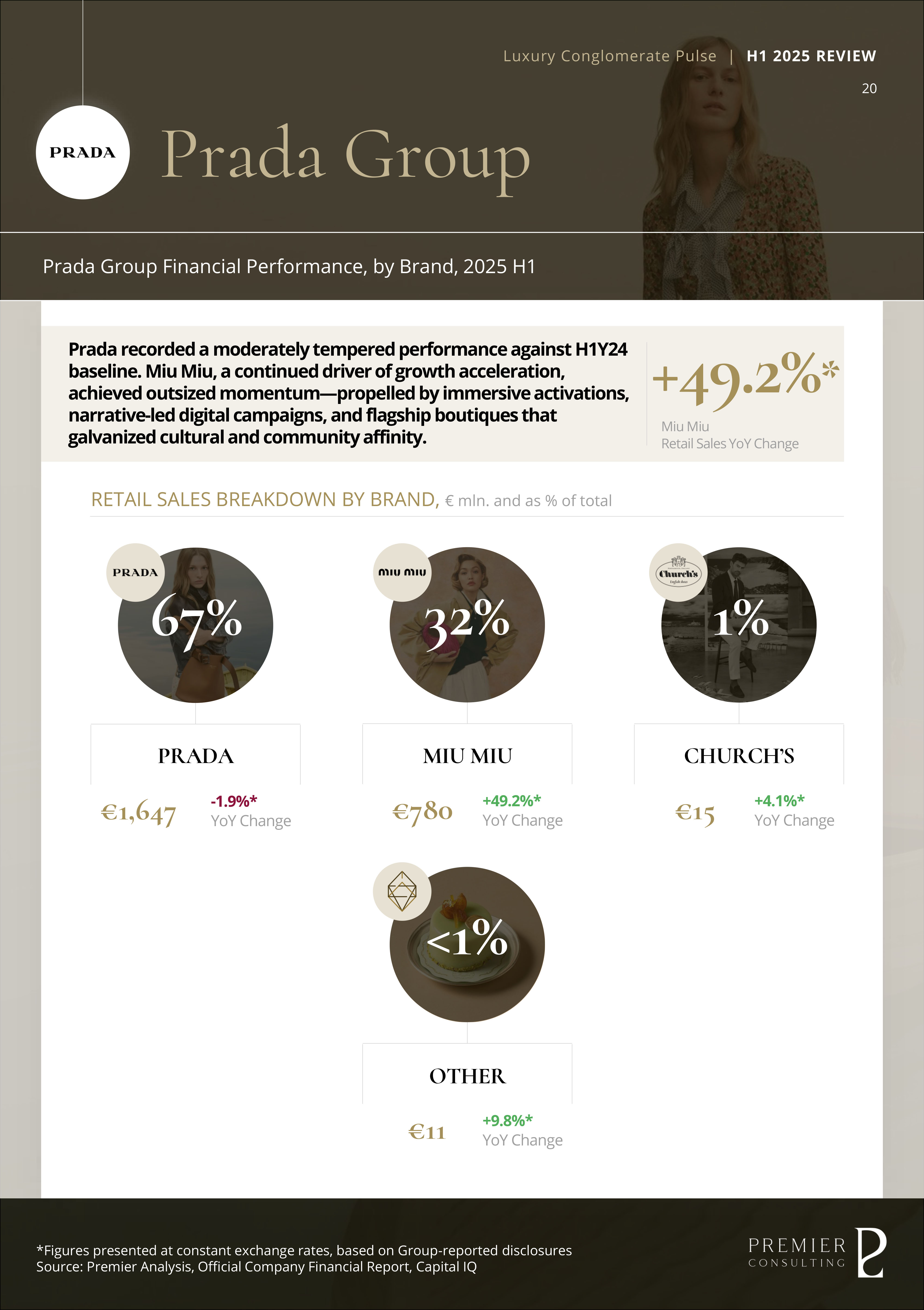 Against a backdrop of decelerating growth in the Group’s flagship brand and a sharp slowdown in the Chinese market, Miu Miu emerged as a key driver of moderate overall growth. Sales surged nearly 50% year-on-year, with strong performance across both Western and Asia-Pacific markets — underscoring the commercial resonance of its cultural momentum. The Group continued to attract high-net-worth clientele and sustained high-quality profitability and a solid foundation for long-term development through retail optimization and strategic capital deployment.