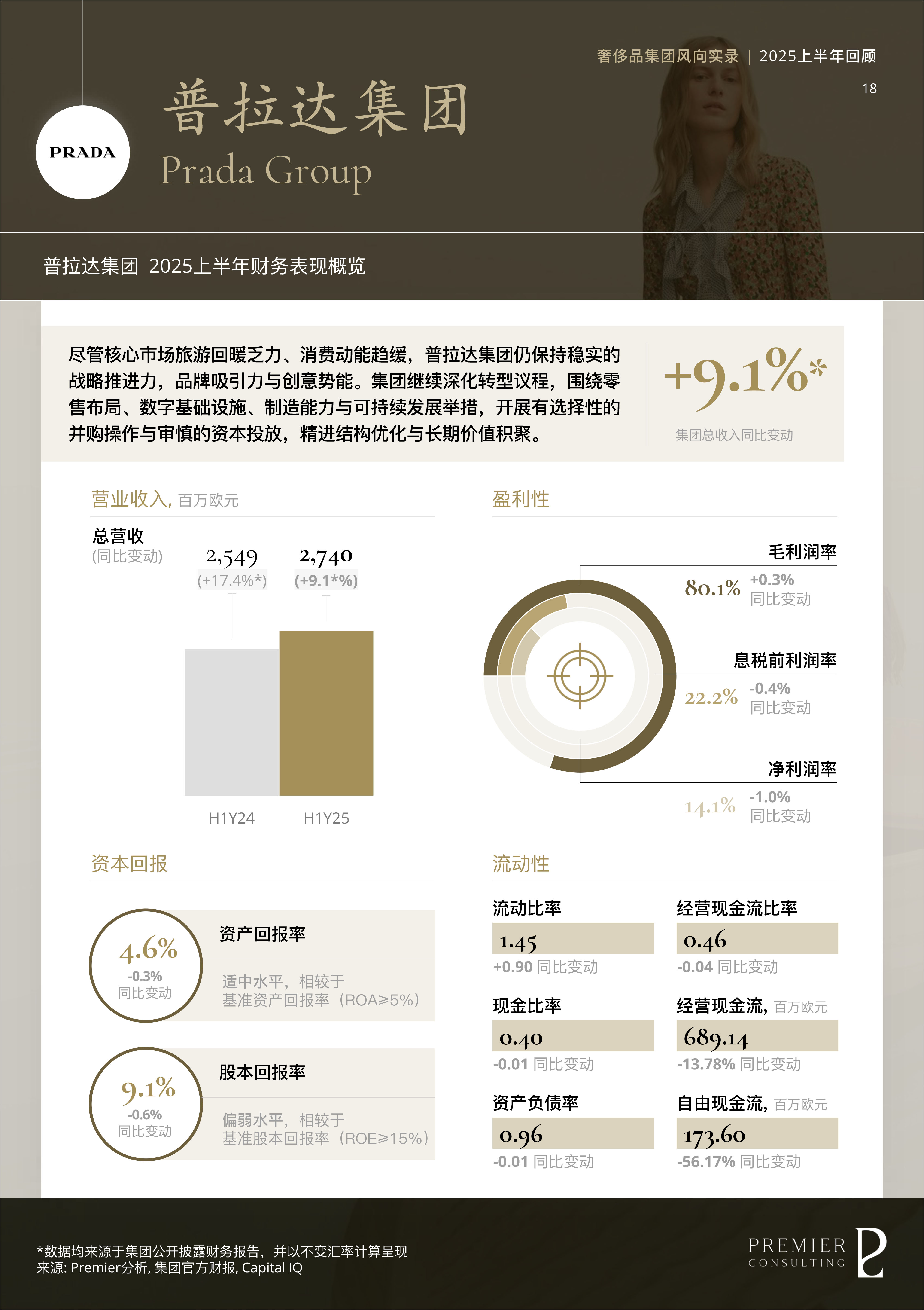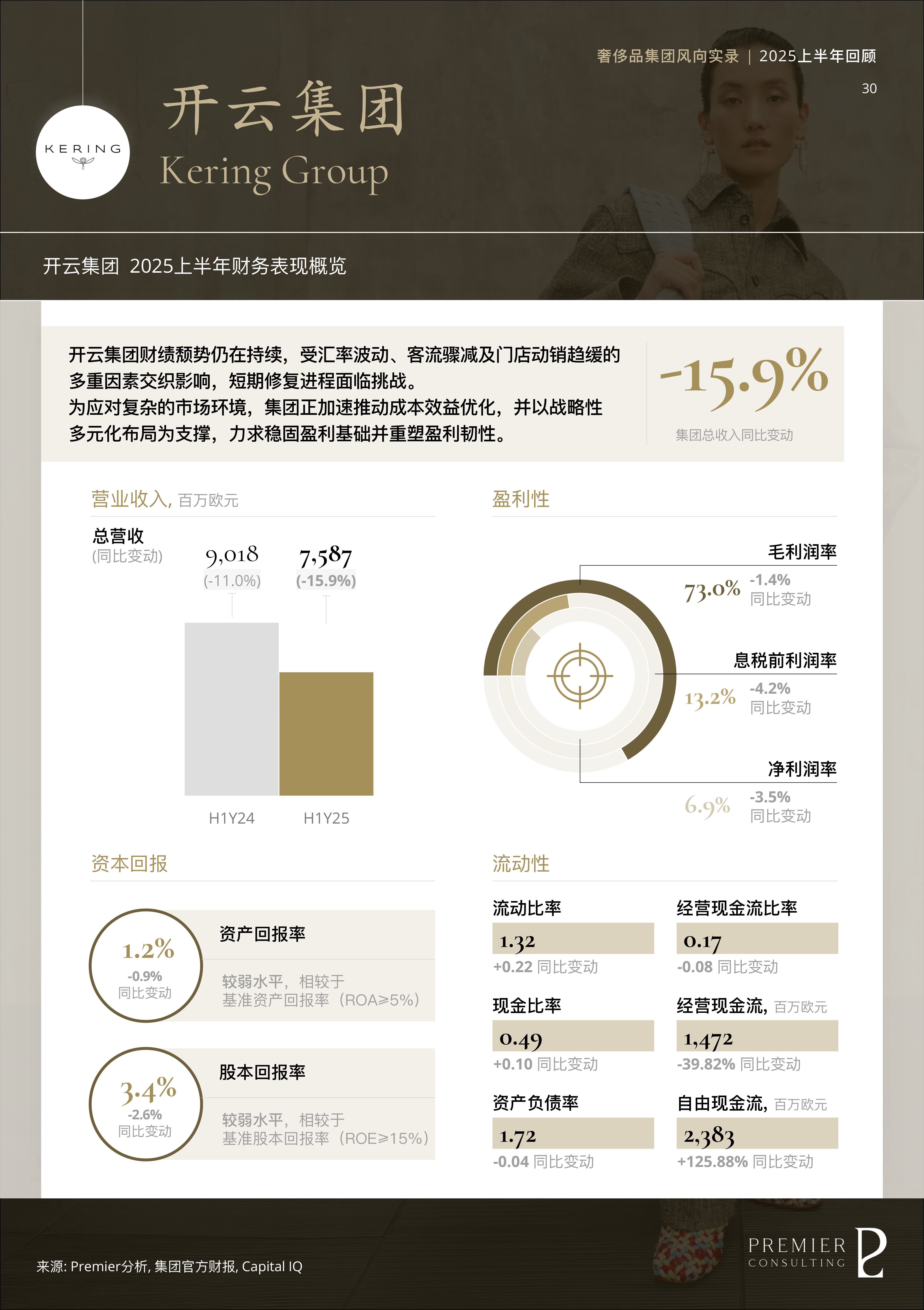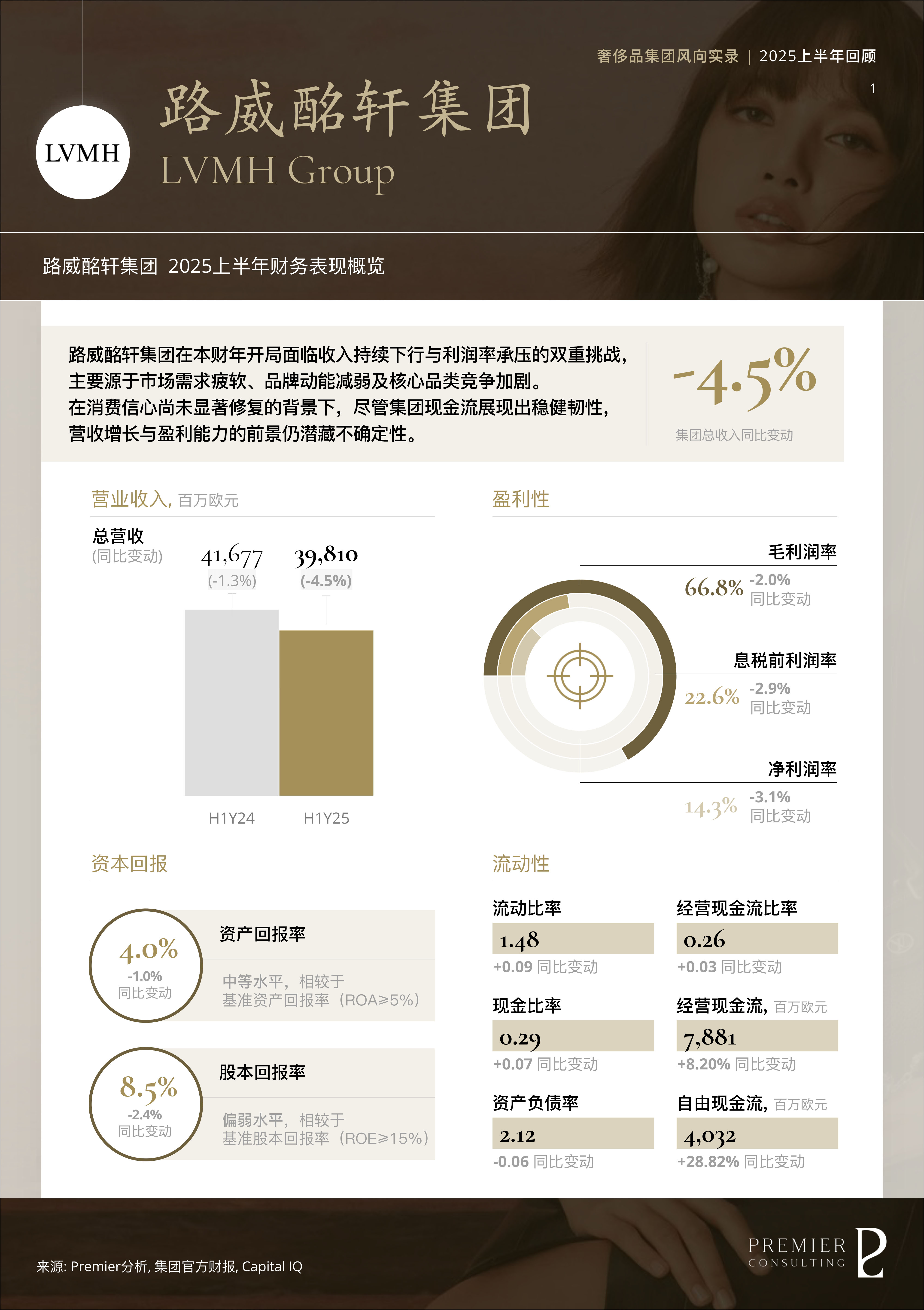 核心时装业务销售下滑,拖累整体营收表现,利润端同步收紧。区域表现波动加剧,中国复苏未达预期。集团通过强化成本管控与多元业务支撑,维持规模体量与市场活跃度,继续稳固其行业影响力。