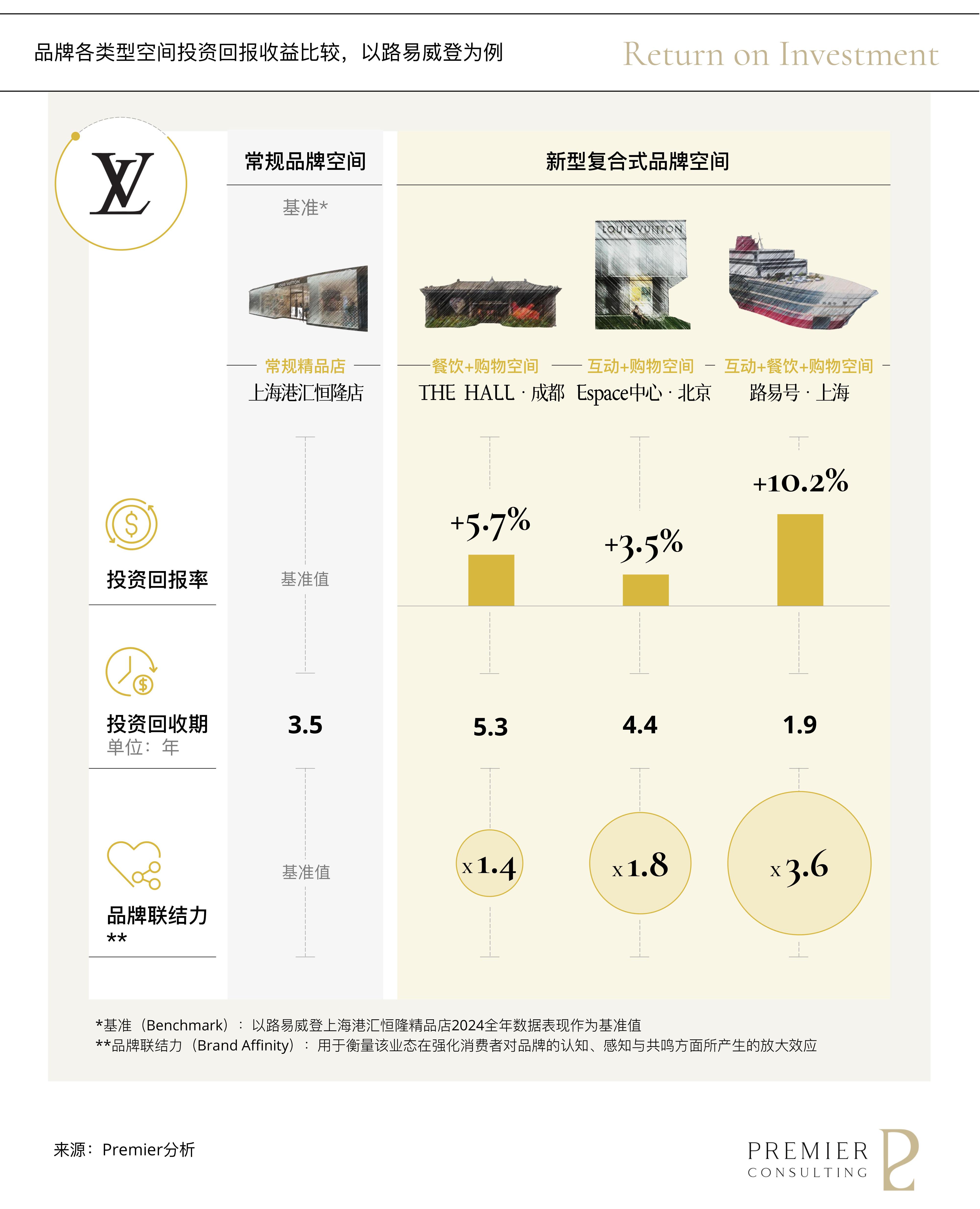 上述启示为奢侈品牌在互动、购物与餐饮三大维度重塑顾客旅程提供了前行程式。然而,不同业态在价值兑现上的表现迥异,由此引申出一个核心命题:如何在投资回报、回收周期与品牌联结力之间寻得最优平衡,成为评估模式可复制性与确定战略优先级的关键锚点。